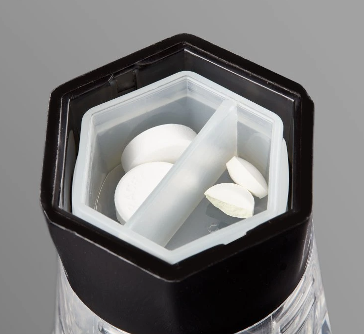 Multifunkčný delič liekov predstavuje praktické riešenie pre každodenné užívanie liekov, najmä pre ľudí, ktorí potrebujú presné dávkovanie alebo majú problém s manipuláciou s tabletami. Zariadenie vyniká svojou všestrannosťou – kombinácia piatich funkcií (delič, drvič, extraktor, pohár na vodu a úložná krabička) z neho robí skutočne multifunkčný nástroj.