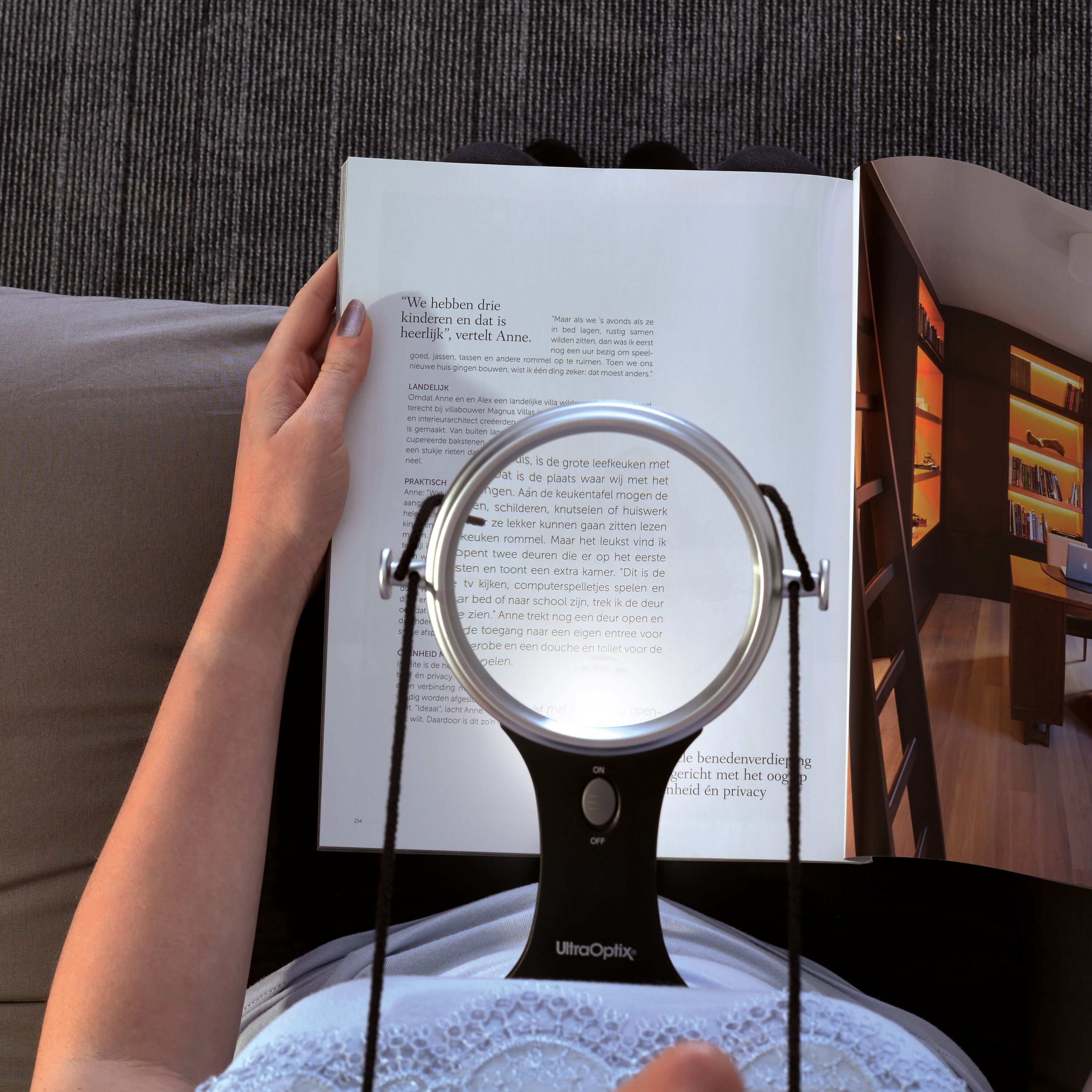 Dodáva sa so zabudovaným svetlom, takže ju môžete používať v akejkoľvek situácii: doma, v kancelárii alebo pri ležaní v posteli – všade, kde potrebujete mať voľné ruky a vidieť. S týmto produktom je čítanie oveľa jednoduchšie, pretože vaše ruky sú voľné na držanie čítaného materiálu!