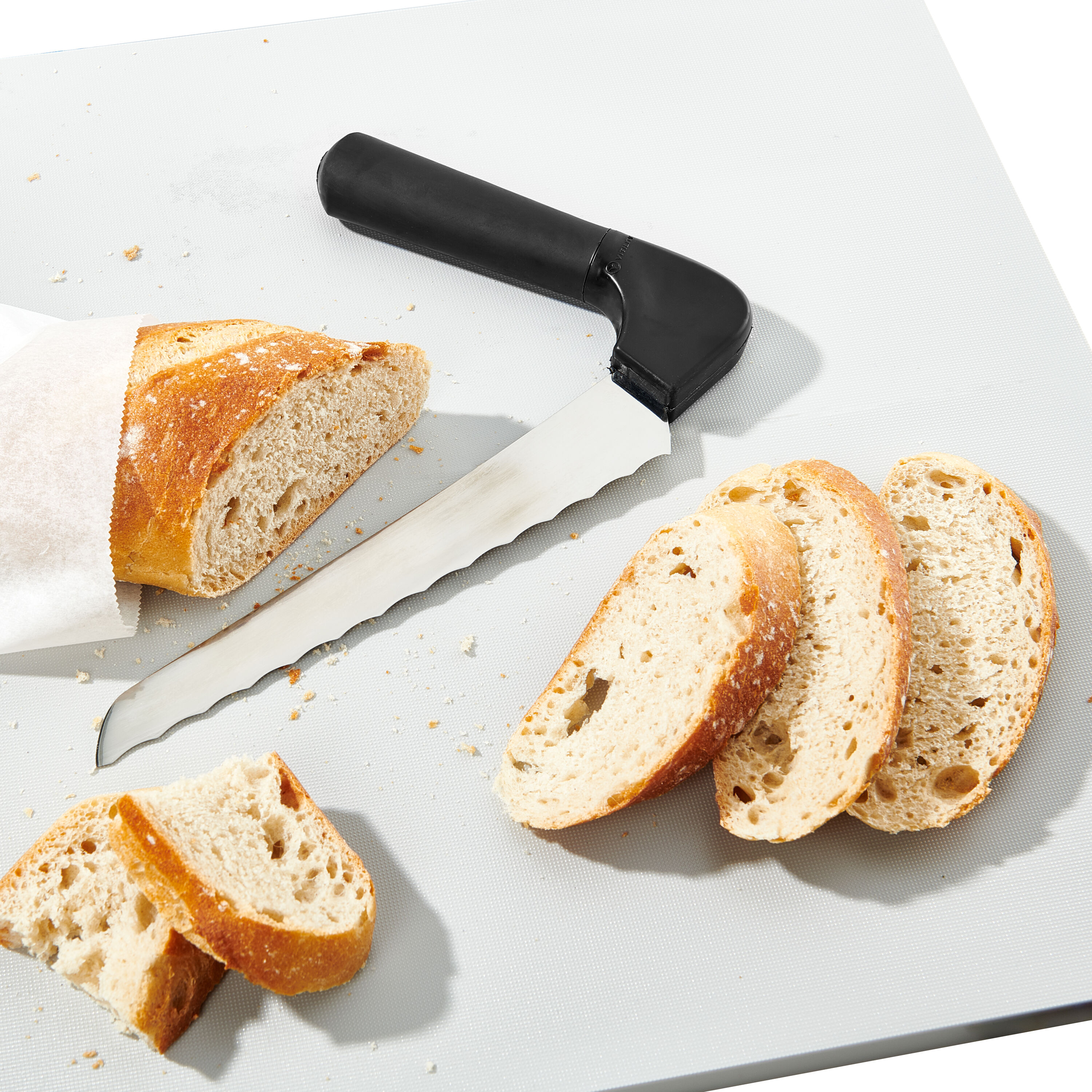 Nôž na chlieb – ergonomický má šikmú rukoväť, takže na vykonanie práce je potrebné minimálne úsilie. Šikmá rukoväť drží ruku, zápästie a predlaktie v prirodzenej (anatomickej) polohe, čo zabraňuje nadmernej námahe zápästia, súvisiacej bolesti a/alebo zápalu.